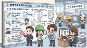외부 문서도 예외가 아니며, 결국 통제의 목적은 “문서를 잘 정리하는 것”이 아니라 안전보건경영시스템이 잘못된 정보 때문에 흔들리지 않게 하는 것입니다. 그래서 7.5.3은 7.5 전체의 마무리이자, 문서화된 정보가 실제로 현장에서 맞는 버전으로 사용되게 만드는 핵심 조항이라고 보는 것이 가장 정확합니다.