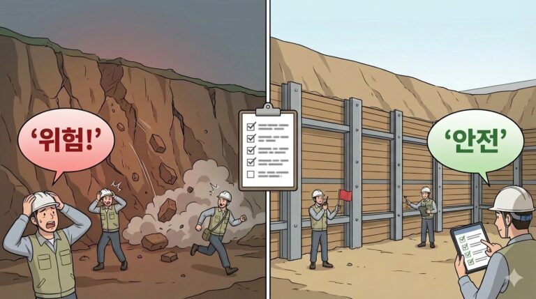 제50조(토사등에 의한 위험 방지): 안전한 지반경사 확보, 토석 제거, 옹벽·지보공 설치, 빗물·지하수 배제를 작업 전·중·후로 관리하고 점검 기록과 시정 조치를 유지해야 토사·구축물 붕괴 재해를 예방할 수 있습니다. 산업안전보건기준에 관한 규칙 제50조(토사등에 의한 위험 방지) 해설 제50조는 토사·구축물 붕괴 또는 낙하…