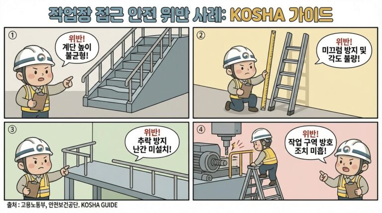 4편. KOSHA GUIDE A-G-2-2025 점검과 위반사례: 현장 감독자가 바로 쓰는 통로 점검표와 불량 설치 포인트 KOSHA GUIDE A-G-2-2025 기반 해설 · Clean Document Theme · 시리즈 4편 점검/위반 시리즈 permalink 바로가기 1편. A-G-2-2025 허브 2편. 선정 기준 3편. 설치 수치와…